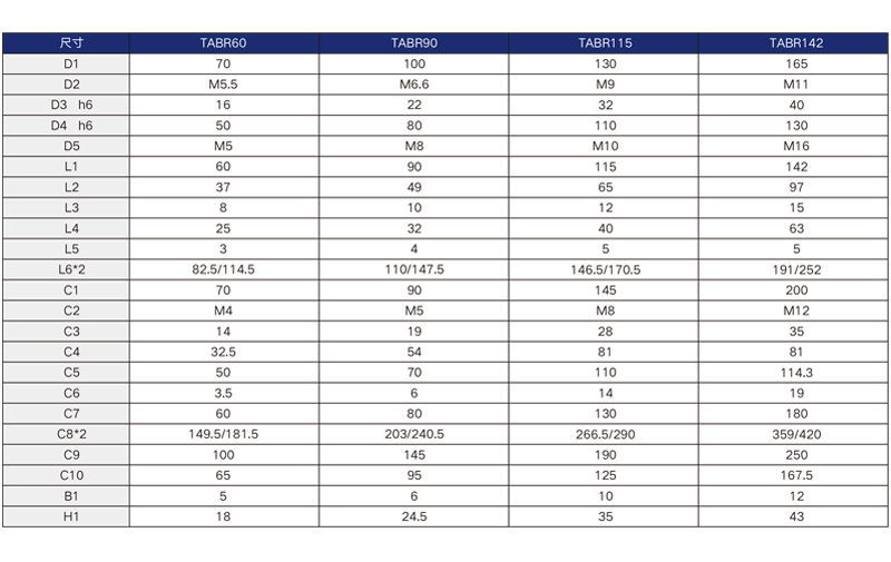 TABR系列性能參數(shù)表/TABR Series Performance Table | |||||||