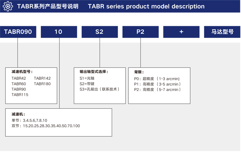 規(guī)格 Specification | 單位 Unit | 節(jié)數(shù) Stage | 減速比 Ratio | TABR60 | TABR90 | TABR115 | TABR142 |