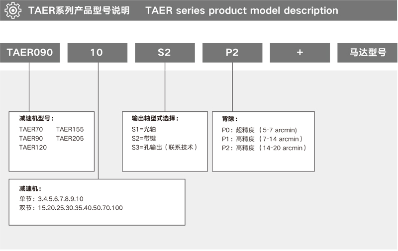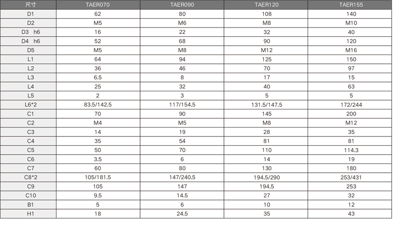 規(guī)格 Specification | 單位 Unit | 節(jié)數(shù) Stage | 減速比 Ratio | TAER070 | TAER090 | TAER120 | TAER155 |