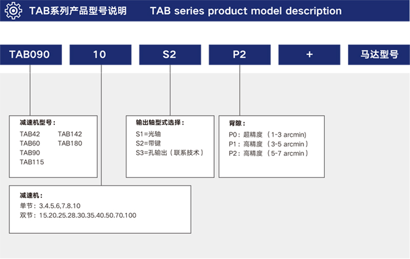 規(guī)格 Specification | 單位 Unit | 節(jié)數(shù)Stage | 減速比Ratio | TAB42 | TAB60 | TAB90 | TAB115 | TAB142 | TAB180 | TAB220 |