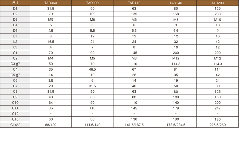 TAD列性能參數(shù)表 / TAD Series Performance Table | ||||||||