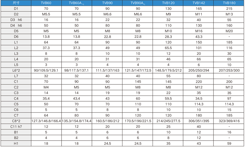 TVB系列性能參數(shù)表 / TVB Series Performance Table | ||||||||