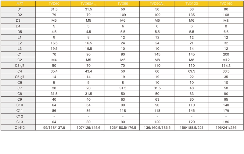 TVD列性能參數(shù)表 / TVD Series Performance Table | ||||||||