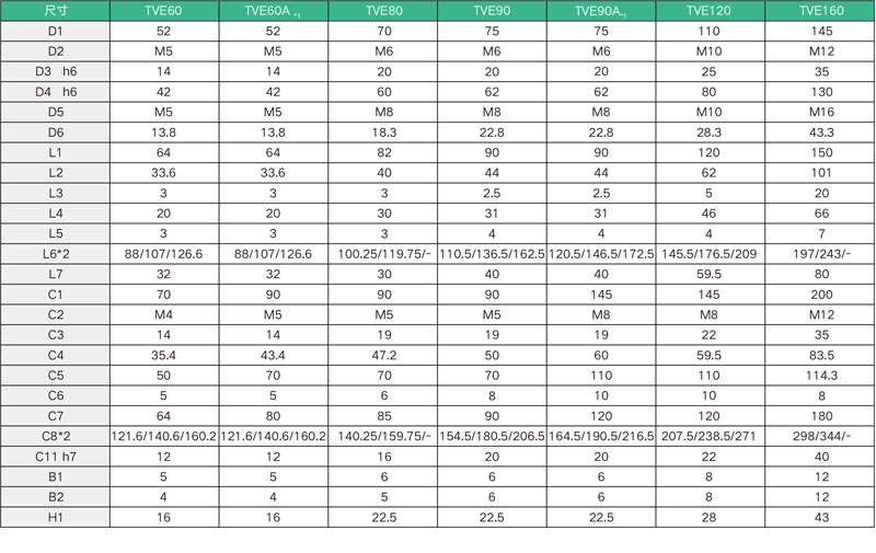 TVE系列性能參數(shù)表 / TVE Series Performance Table | ||||||||