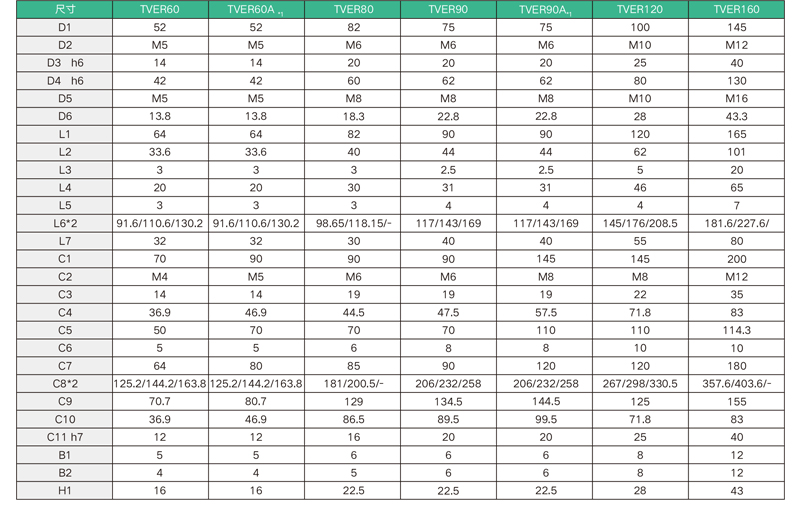 TVER系列性能參數(shù)表 / TVER Series Performance Table | ||||||||