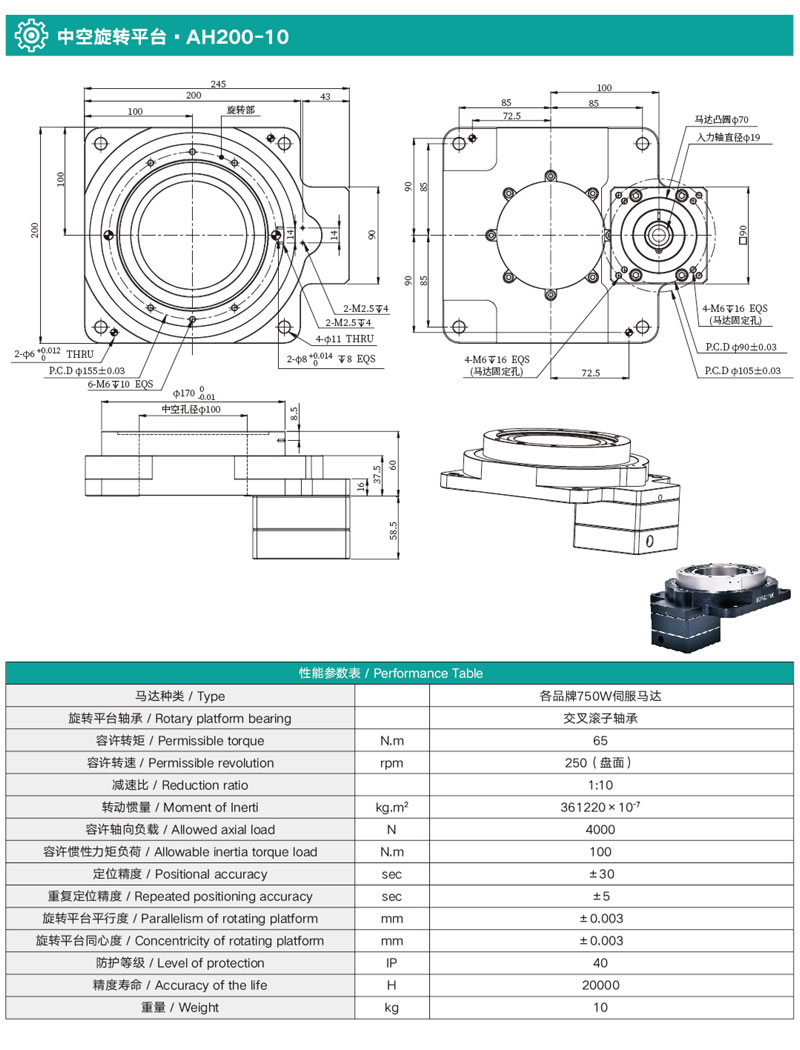 無齒隙,定位精度≤15sec,重復(fù)定位精度可達(dá)±5sec