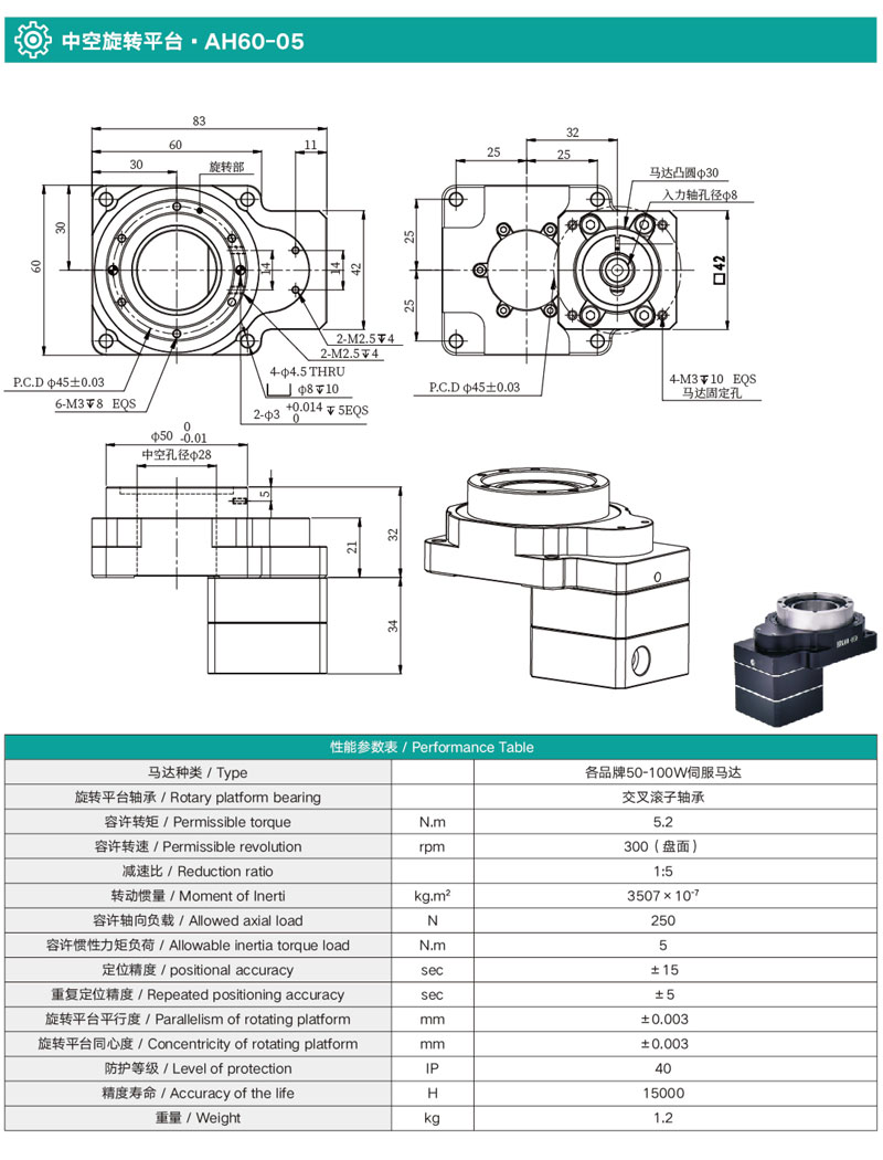 無(wú)齒隙,定位精度≤15sec,重復(fù)定位精度可達(dá)±5sec