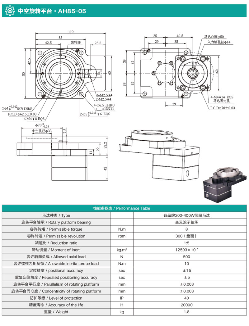 無(wú)齒隙,定位精度≤15sec,重復(fù)定位精度可達(dá)±5sec