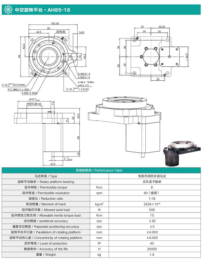 • 中空旋轉(zhuǎn)平臺(tái)AH85-18